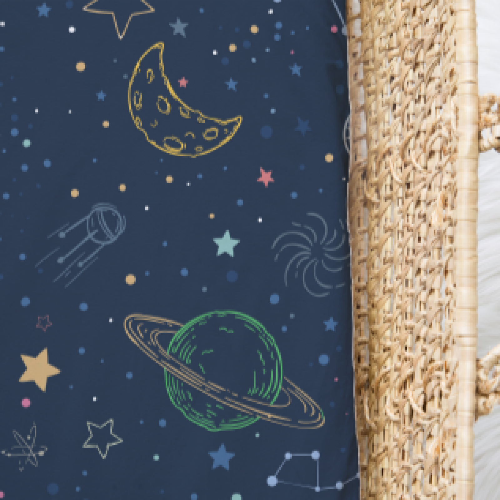 Our fitted bassinet sheets/change mat covers are made from GOTS certified 95% bambo viscose and 5% elastane. Each sheet is made to fit standard sized change mat covers and bassinets, and fold the edges down to have them snugly fit your Moses basket too. Being made from a 4-way stretch material with an elastic enclosed seam it means our fitted bassinet sheets/change mat covers are completely versatile.