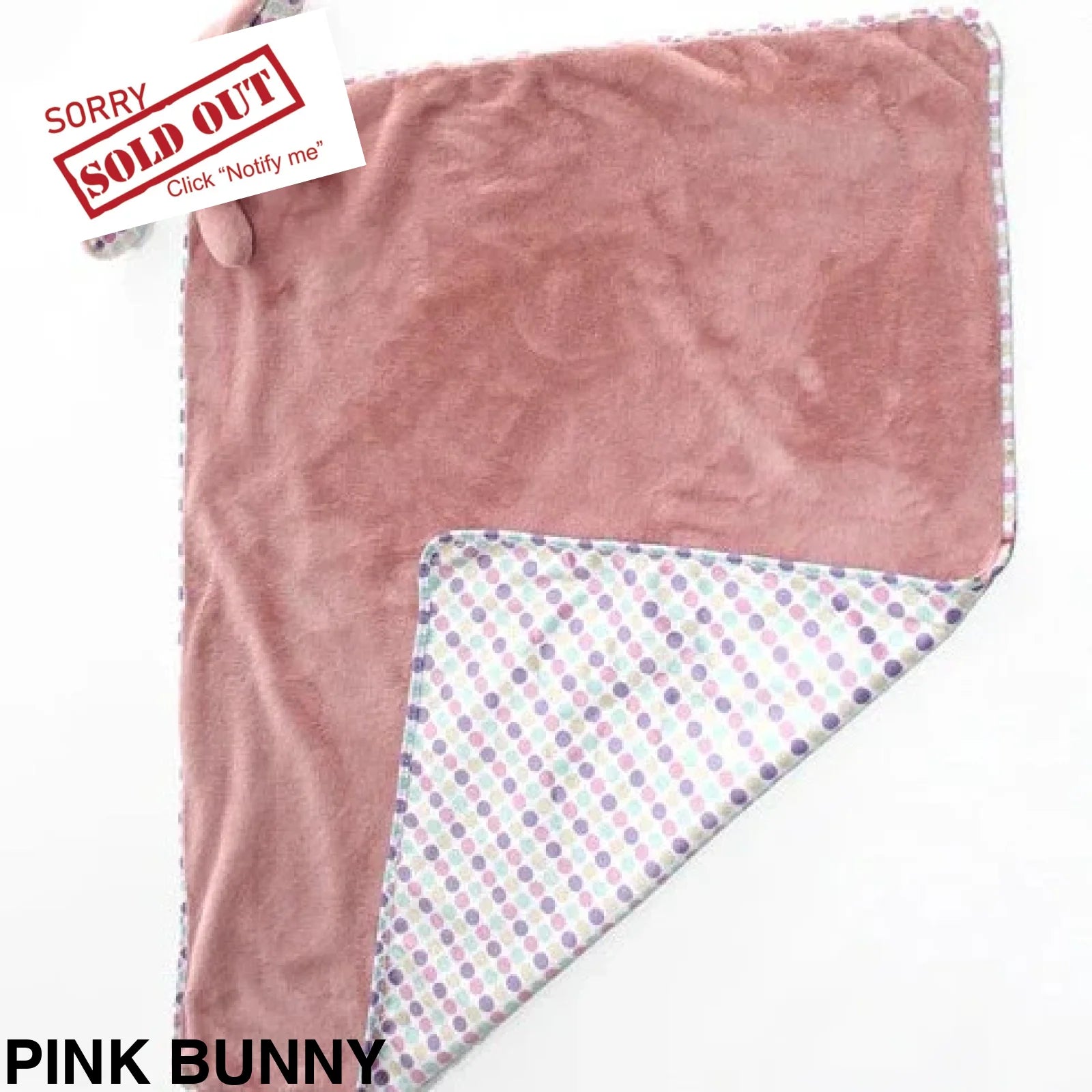 Super soft and cuddly blanket with bunny head, little ones will love cuddling this one. They are a large size, measuring approximately 700 x 900mm