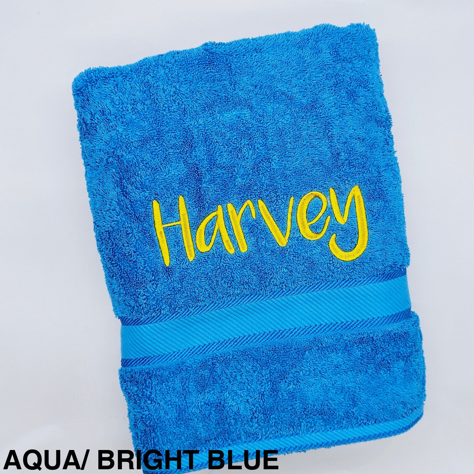The Kingtex Towel range is a luxurious heavy weight, long wearing, made from 100% durable cotton and finished with a decorative satin band. 550gsm and approximately 68x 137cm. A range of colours available and personalised with a name in your choice of font and colour.