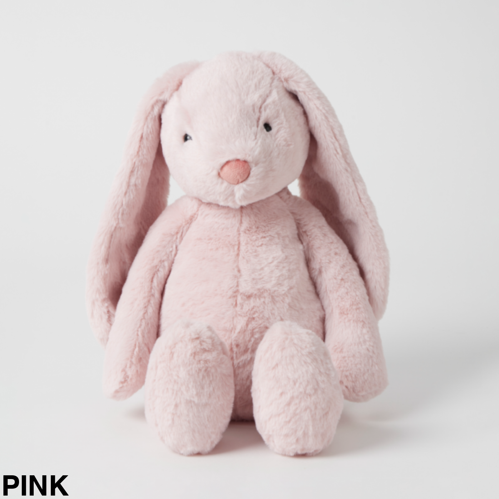 This lovable large bunny is the perfect companion for newborns and toddlers! Made from ultra-plush fabrics and child-safe trimmings, little ones will love the feel of its irresistibly soft fur, making it great for cuddles, and its beanie bottom will help it sit upright during playtime or when displayed on the shelf.