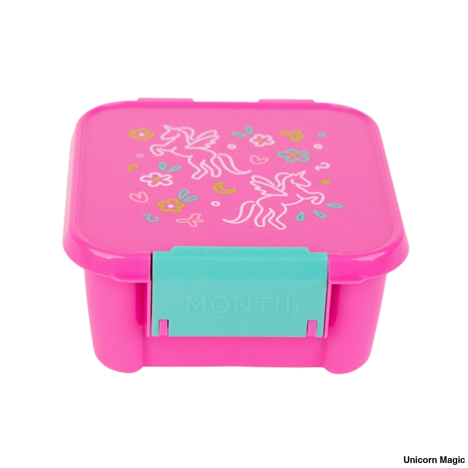 The Montiico Bento Two is the perfect snack box for morning tea or snacks on the go. Lightweight and little enough for the smallest hands!