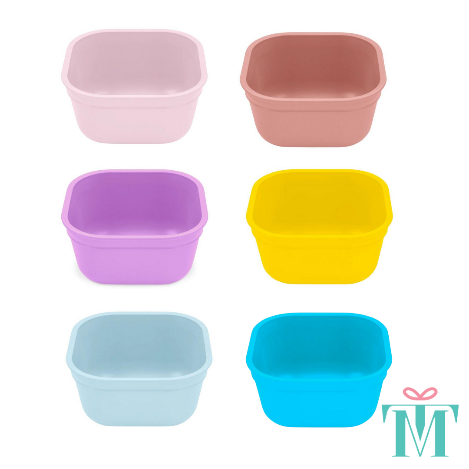 Replay 12oz Square Bowl. All Re-Play is made from FDA approved sustainable HDPE recycled plastic or recycled polypropylene. Not only are they better for your child, they are better for your environment! These square bowls are perfect for salads, small meals, or desserts at any age. The deep sides and flat bottom help keep food in place, making mealtimes easier and less messy. Durable, lightweight, and stackable, they’re a practical choice for everyday use.