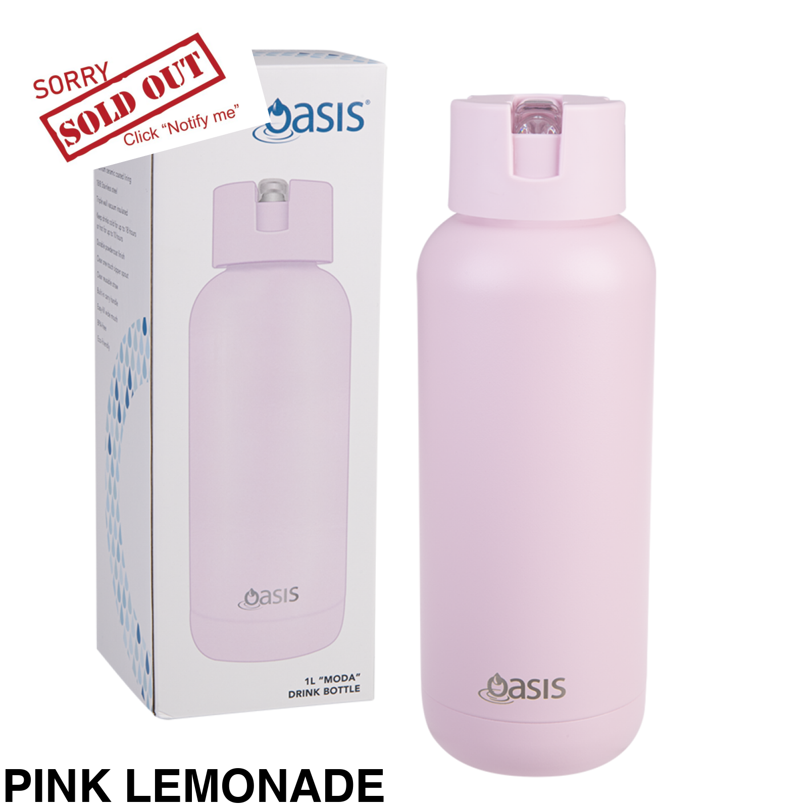 Oasis Moda Triple Insulated 1L Bottle Pink Lemonade