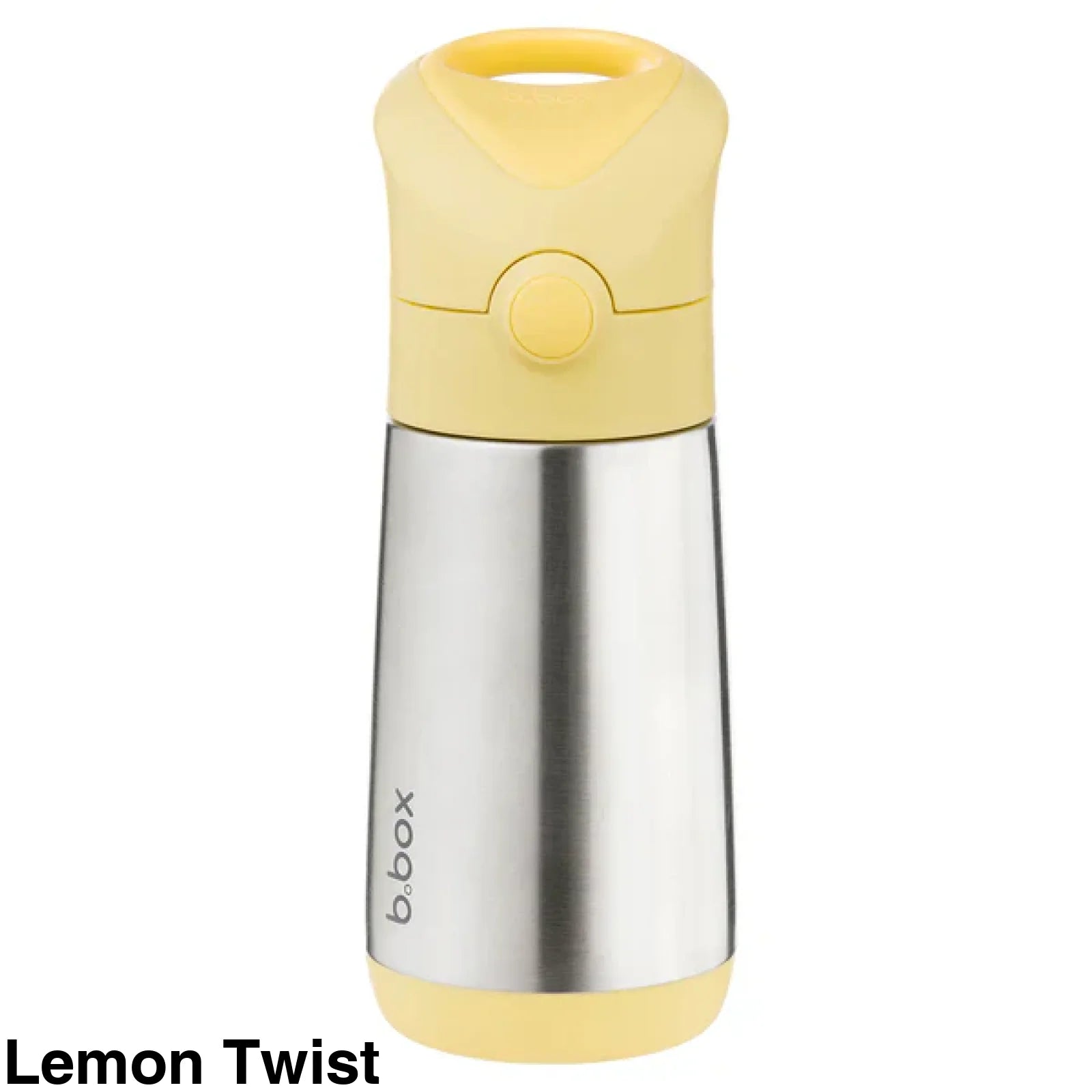 We've redefined cool with our new insulated drink bottle. Our newest drink bottle has insulating super powers! The double walled stainless steel keeps liquids cool for up to 8 hours and warm for up to 6, so now your little one can stay hydrated whatever the weather. Complete with carry handle and push button opening, designed specifically for little hands. Clean modern design and big kid aesthetic. Available in six fab b.box colours. Kids love our easy drinking silicone straw top. Parents love no leaks in the bag (when the lid is closed). Replacement straw packs available, sold separately. When using to keep liquids warm - for best performance fill the stainless steel base with hot water for a few minutes to warm it before pouring water out - and filling with warm liquids.