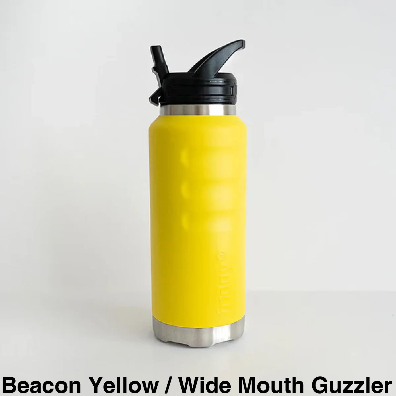 The new range of 1080ml stainless steel Fridgy grip range bottles are designed to keep your drinks cool for the entire working day, no matter what the outside temperature is. The new look bottles feature IP protected grips that are molded into the bottle along with the rugged looking base. They are tough and durable and will stand up to the toughest of treatment. Choose from with the wide mouth guzzler screw lid or a straw sipper lid.