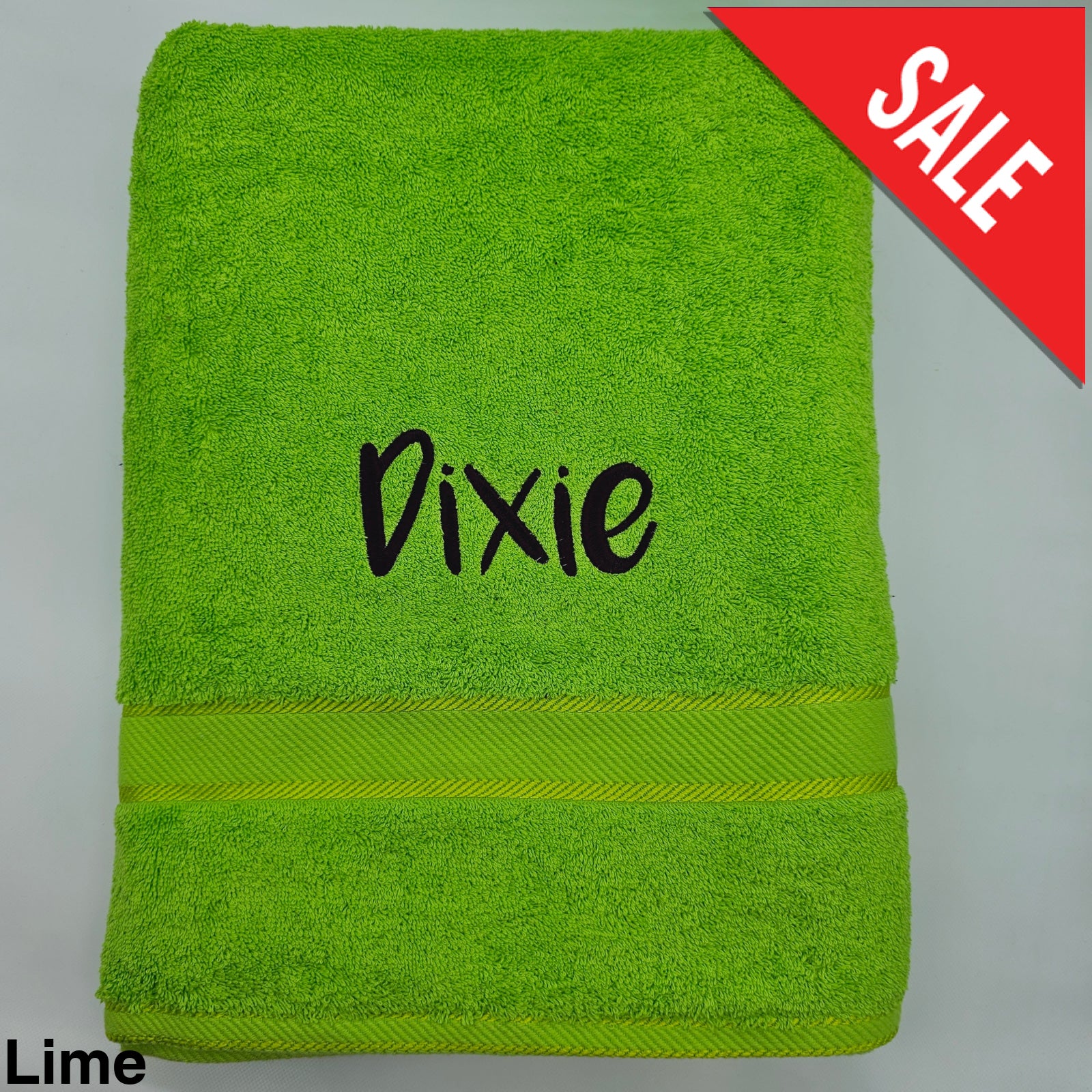 The Elegant Towel range is a luxurious heavy weight, long wearing, made from 100% durable cotton and finished with a decorative satin band. 550gsm. A range of colours available and personalised with a name in your choice of font and colour.