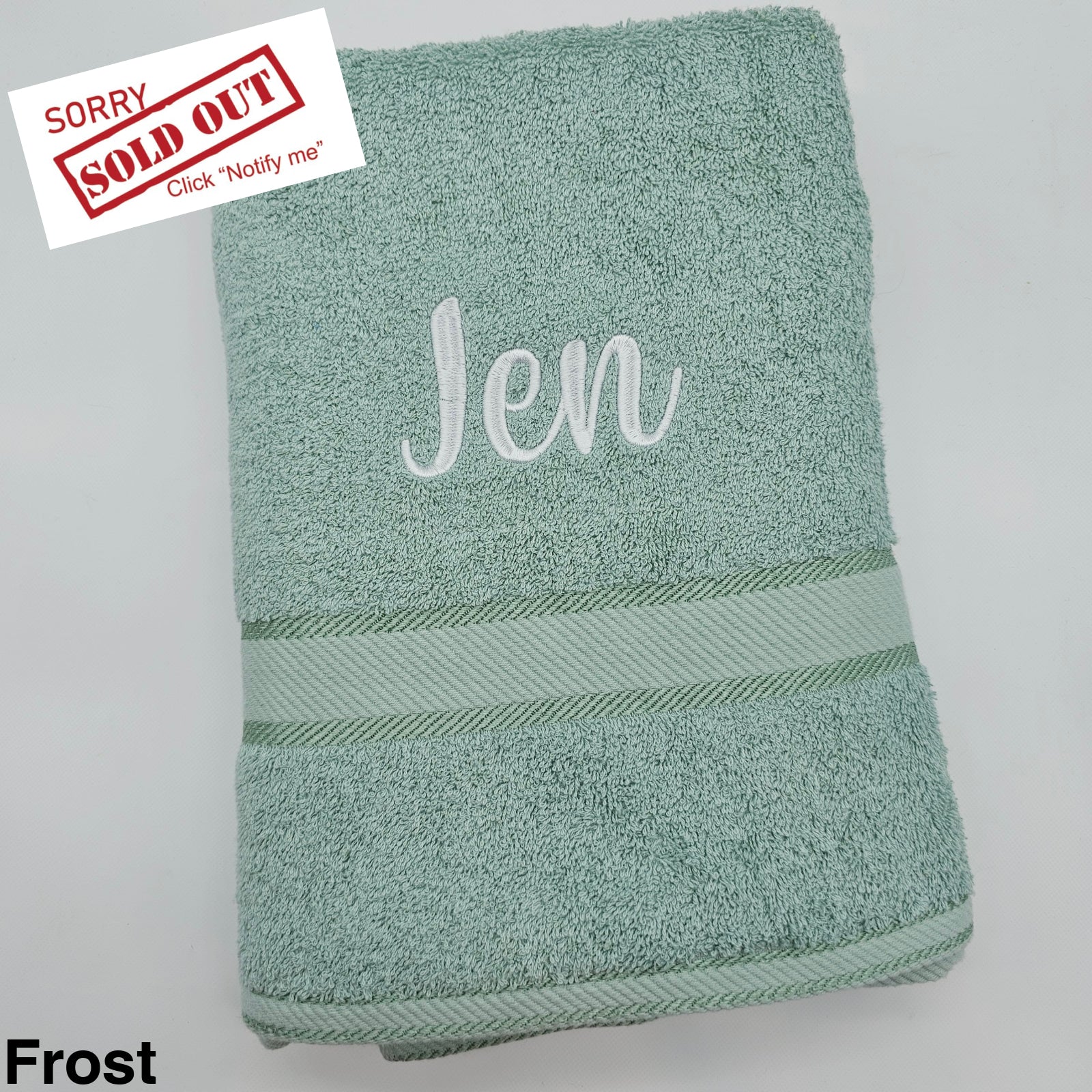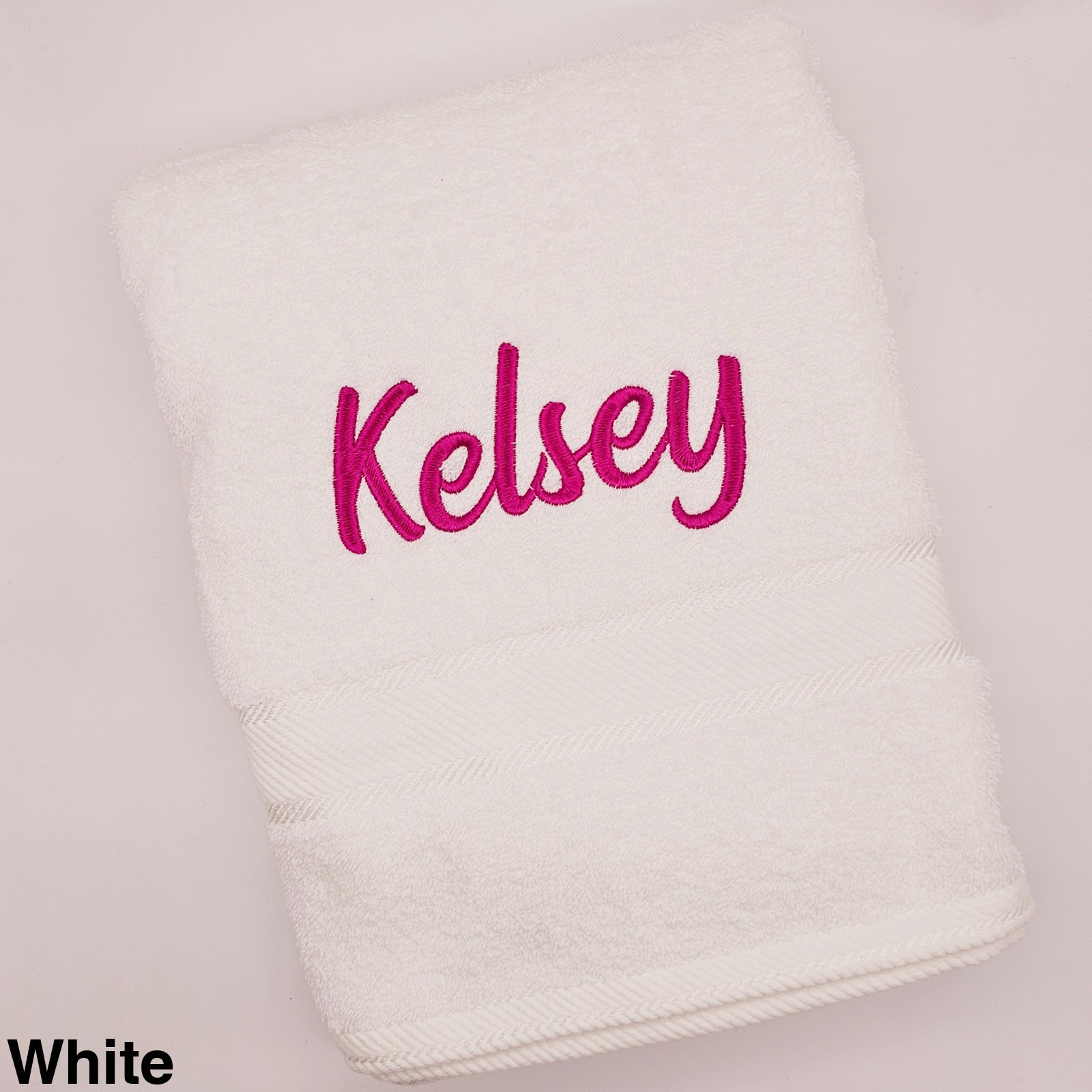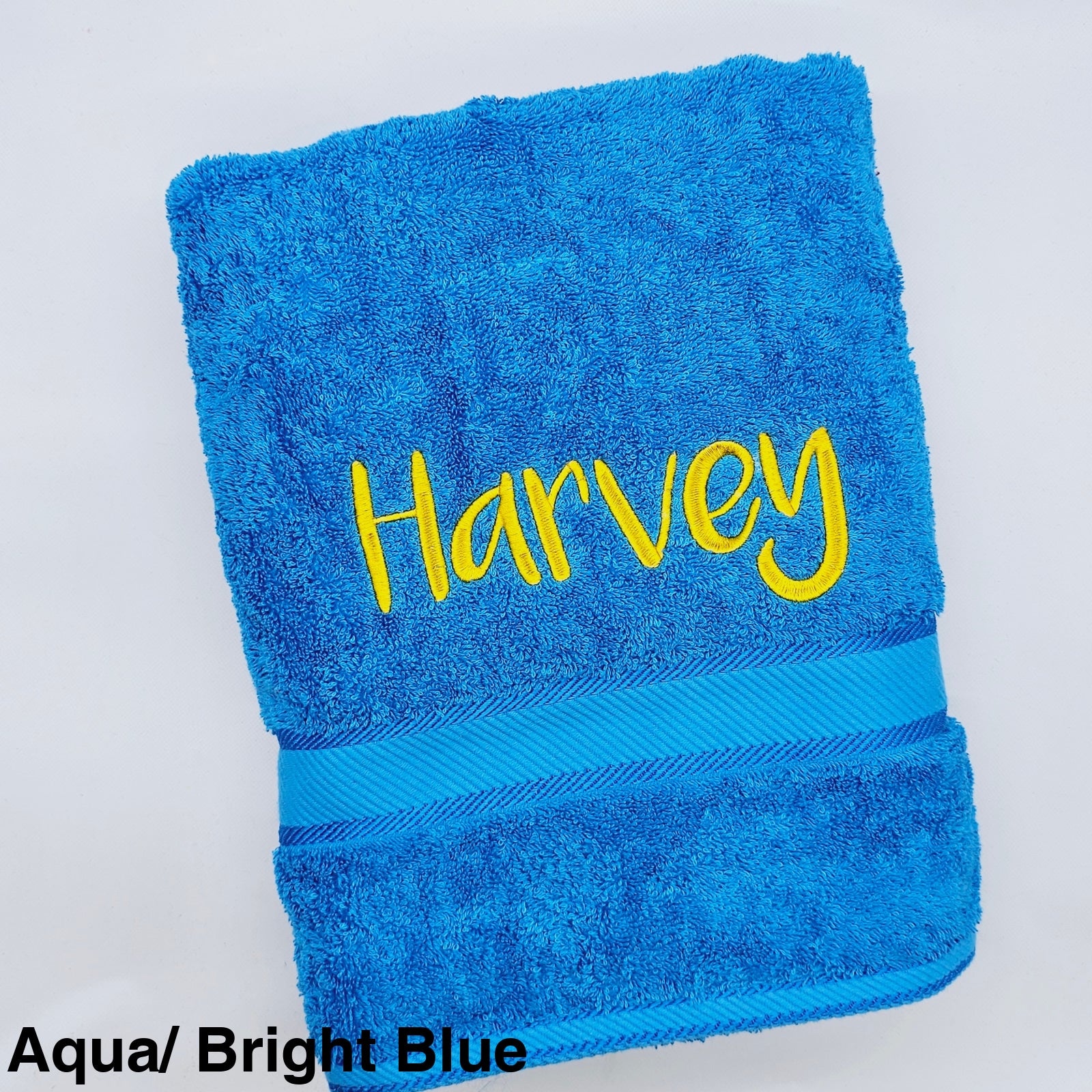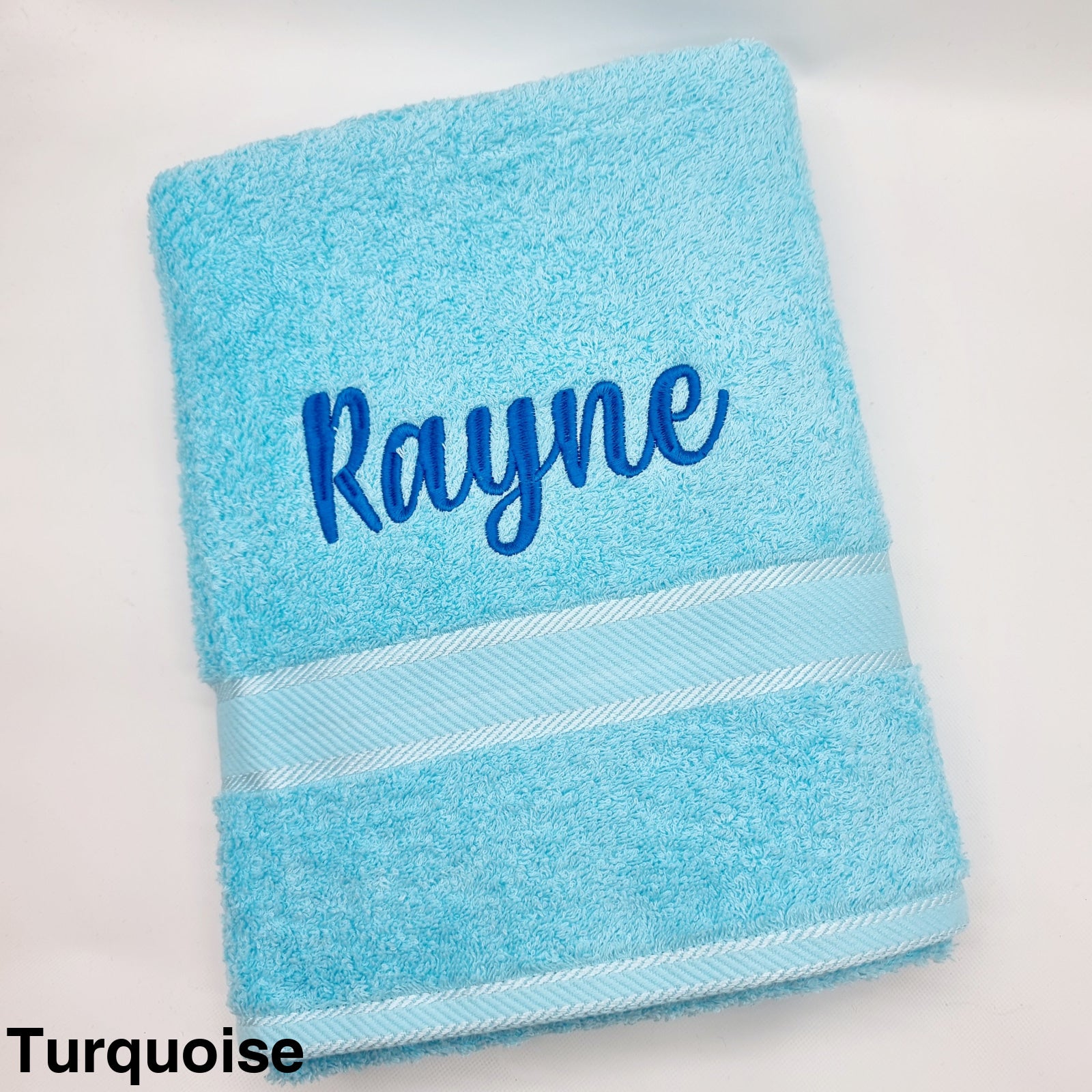 The Kingtex Towel range is a luxurious heavy weight, long wearing, made from 100% durable cotton and finished with a decorative satin band. 550gsm and approximately 68x 137cm. A range of colours available and personalised with a name in your choice of font and colour.