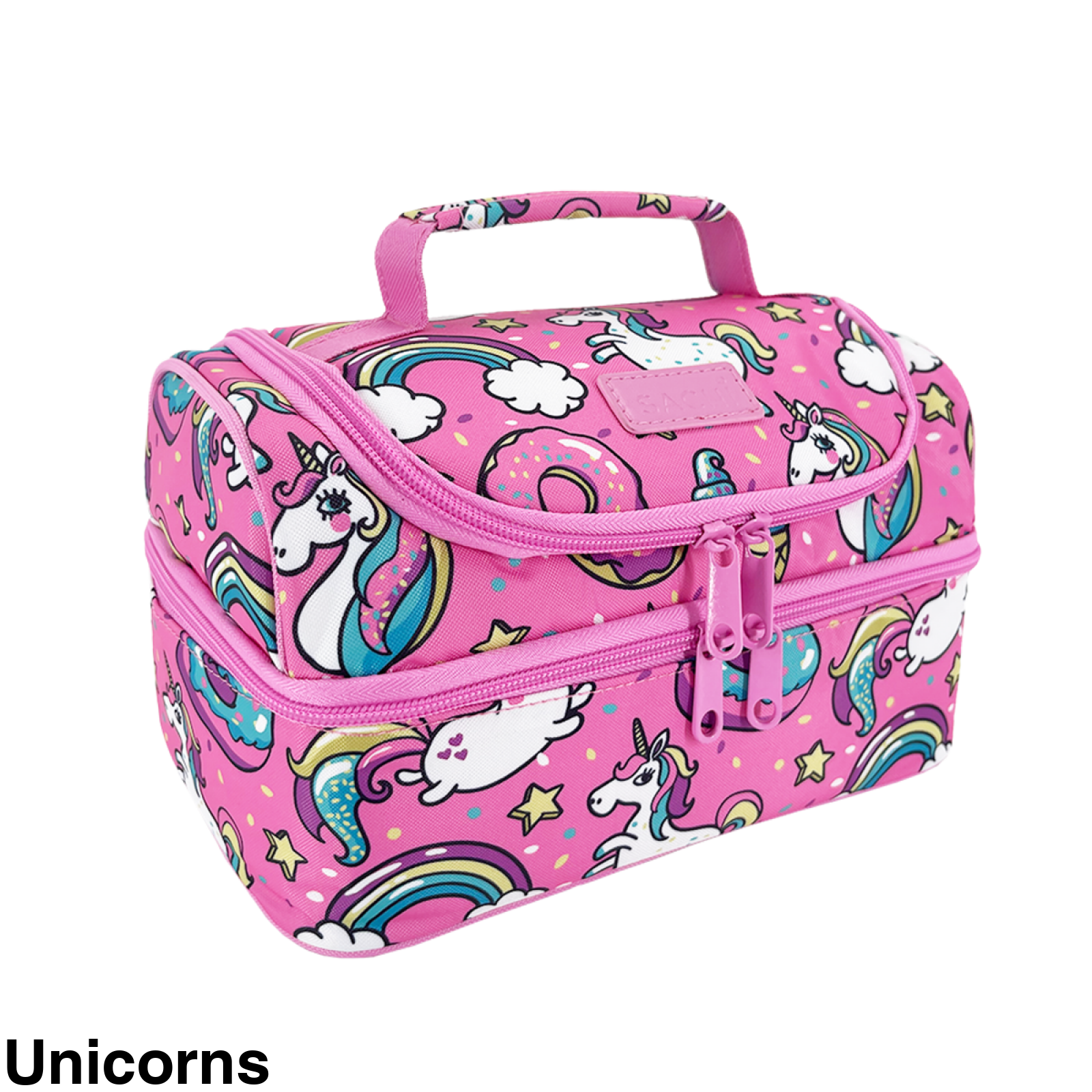 The Sachi  Insulated Double Decker Lunch Bag is a fun and functional lunch carrier designed to meet the needs of active kids. With its vibrant, playful designs, and durable insulated construction, this lunch bag makes for the ideal mealtime companion, whether enjoying lunch at school, at sporting events, or family outings.
