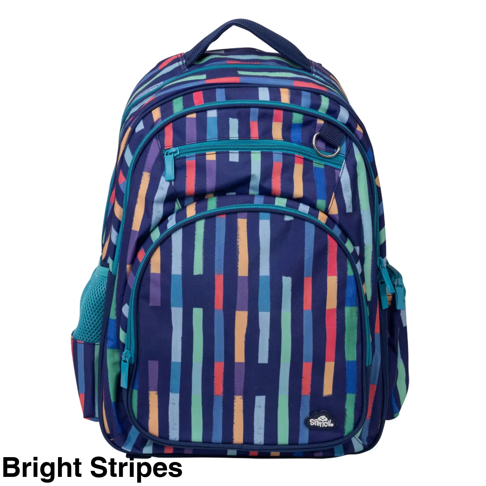 Spencil Big Kid Backpacks are available in a range of designs, either blank or personalised with an embroidered name in your choice of font and colour. Position of the name may change from design to design however will be on the front of the bag.