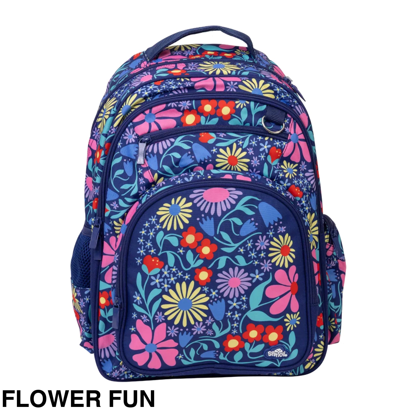 Spencil Big Kid Backpacks are available in a range of designs, either blank or personalised with an embroidered name in your choice of font and colour. Position of the name may change from design to design however will be on the front of the bag.