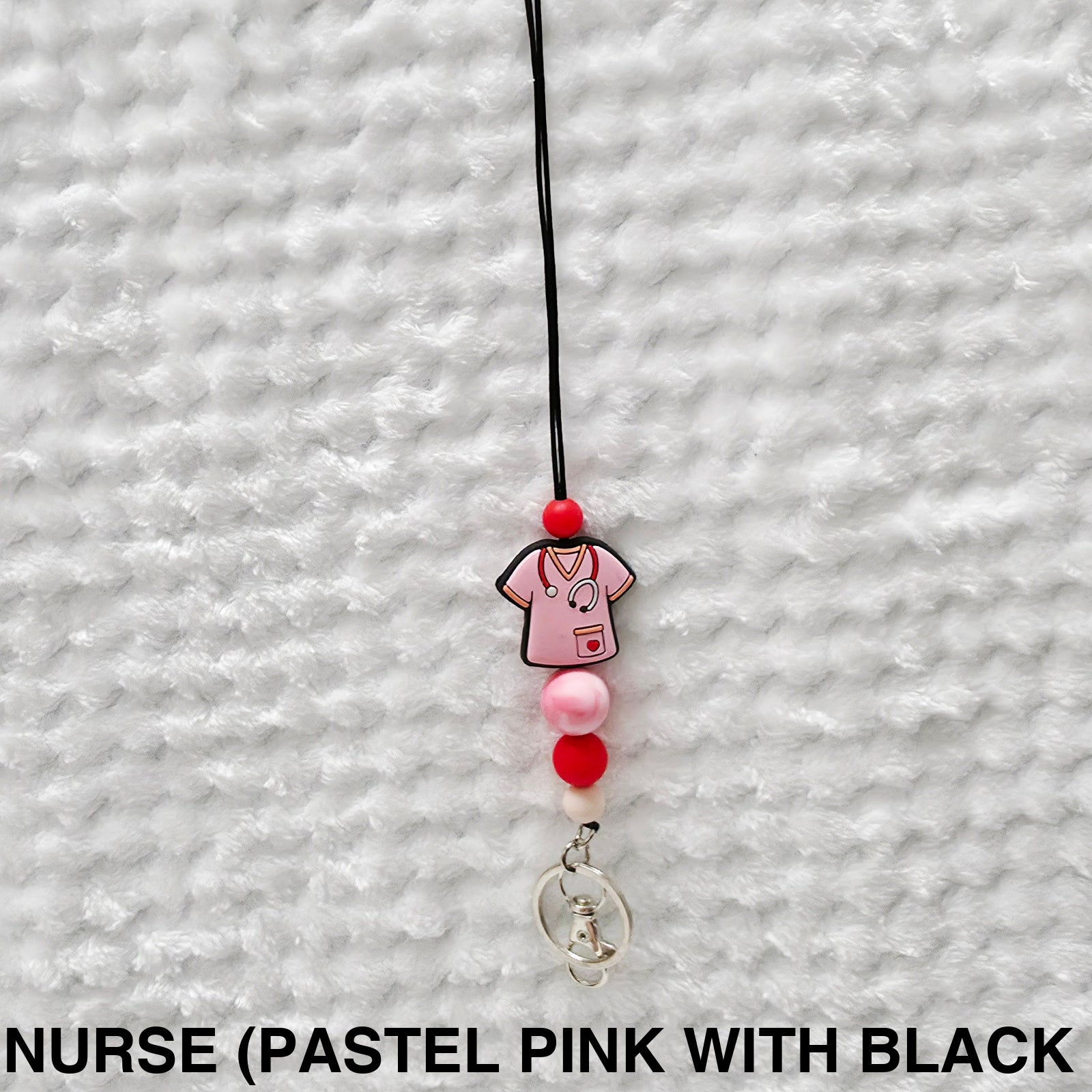 Our lanyards are available in a variety of colour combinations with a range of silicone and metal beads, a clasp and the cord is secured with breakaway clasps.