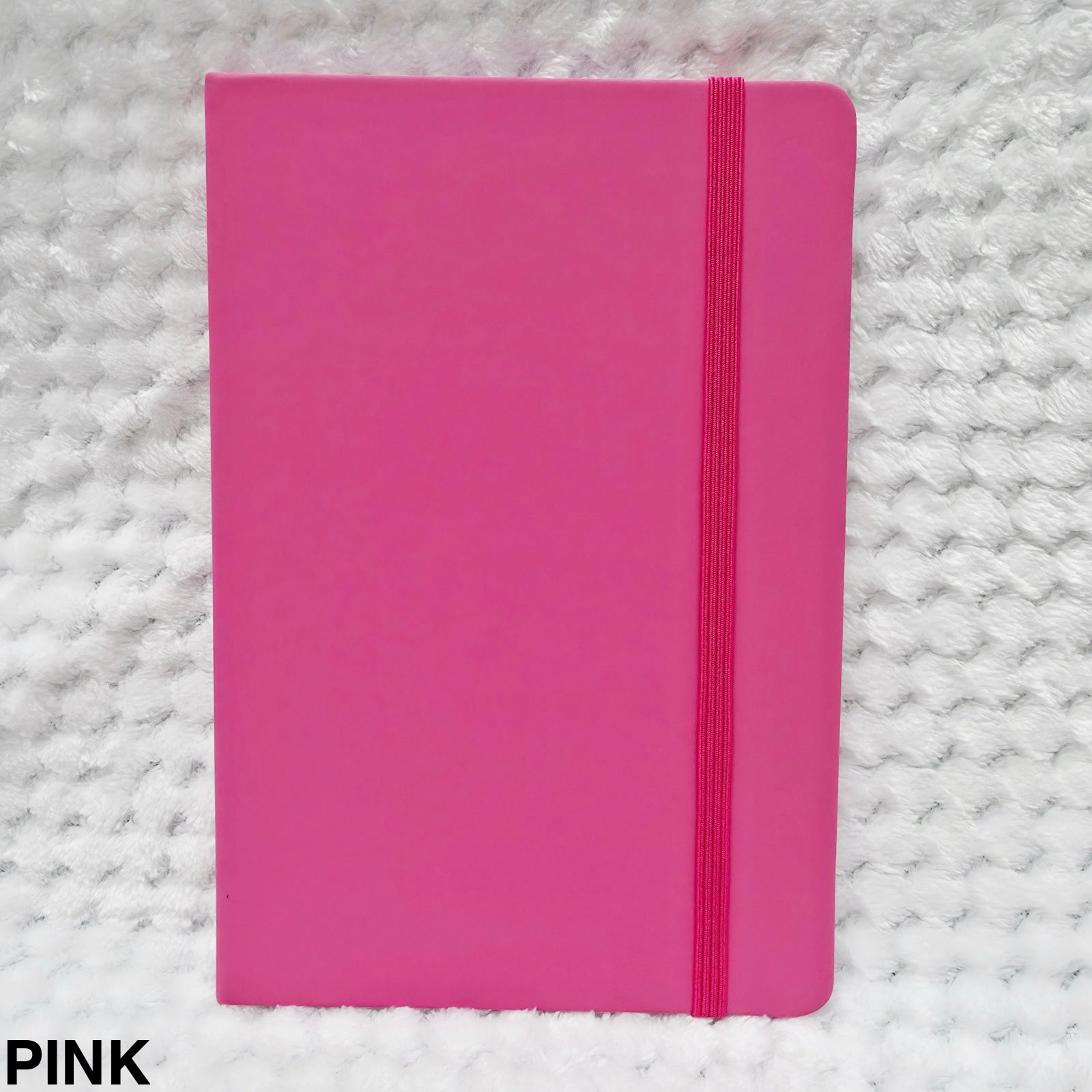 Smart, A5 size notebook with 80 leaves/160 pages of 70gsm lined paper with a coloured hard cover PU cover with an elastic closure band and a bookmark ribbon.