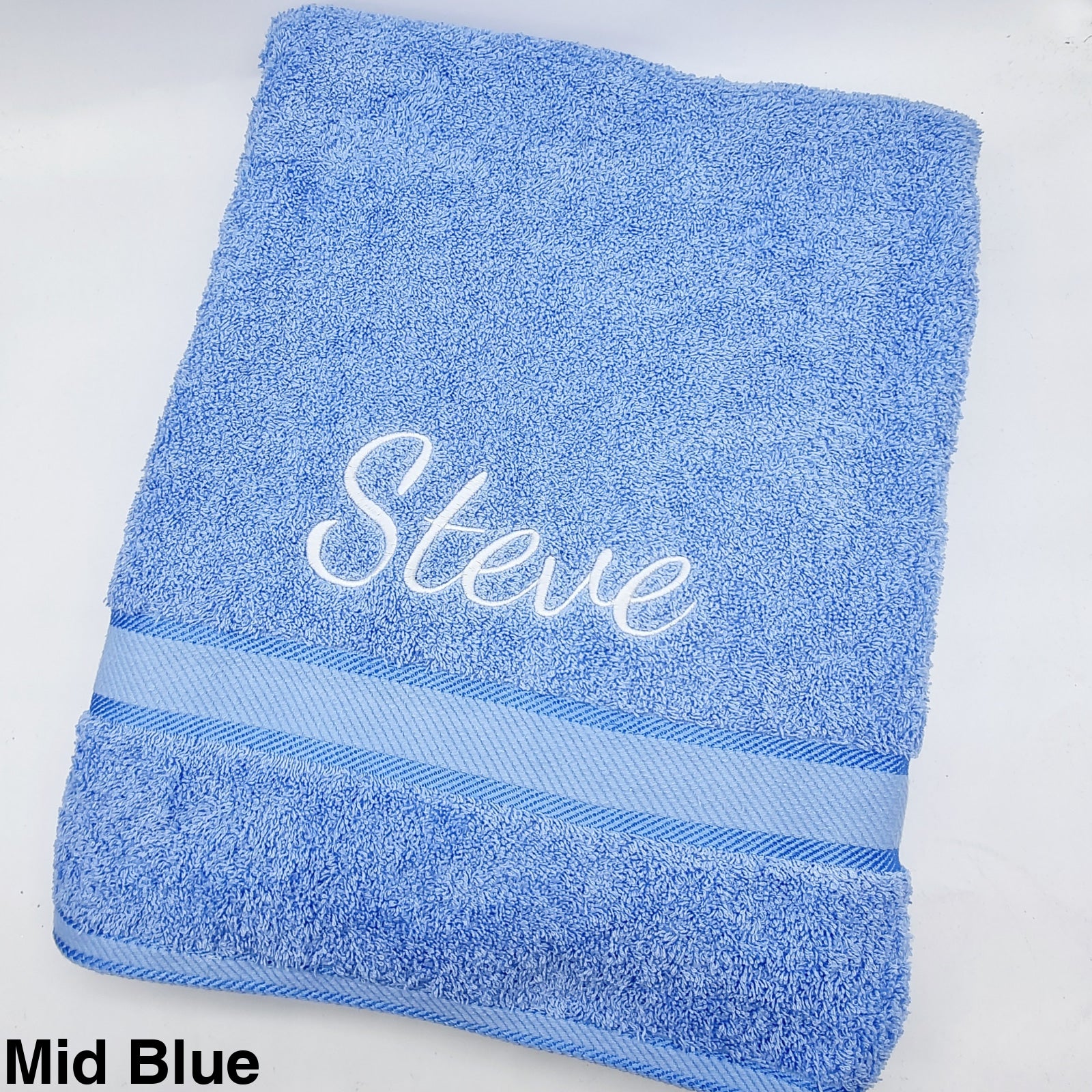 The Elegant Towel range is a luxurious heavy weight, long wearing, made from 100% durable cotton and finished with a decorative satin band. 550gsm. A range of colours available and personalised with a name in your choice of font and colour.