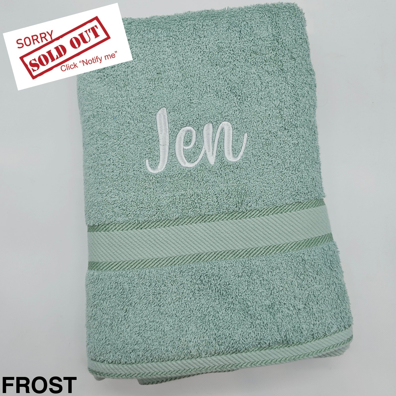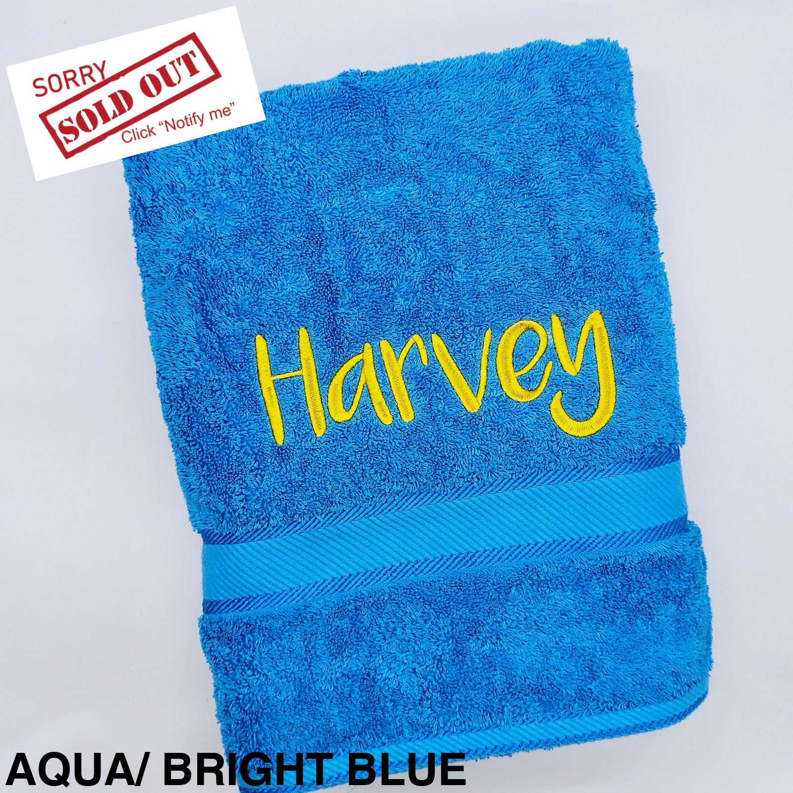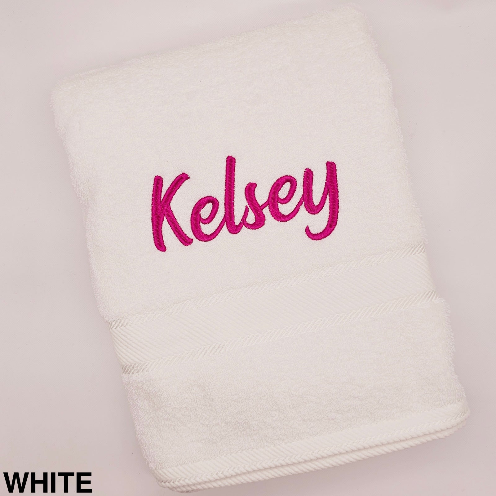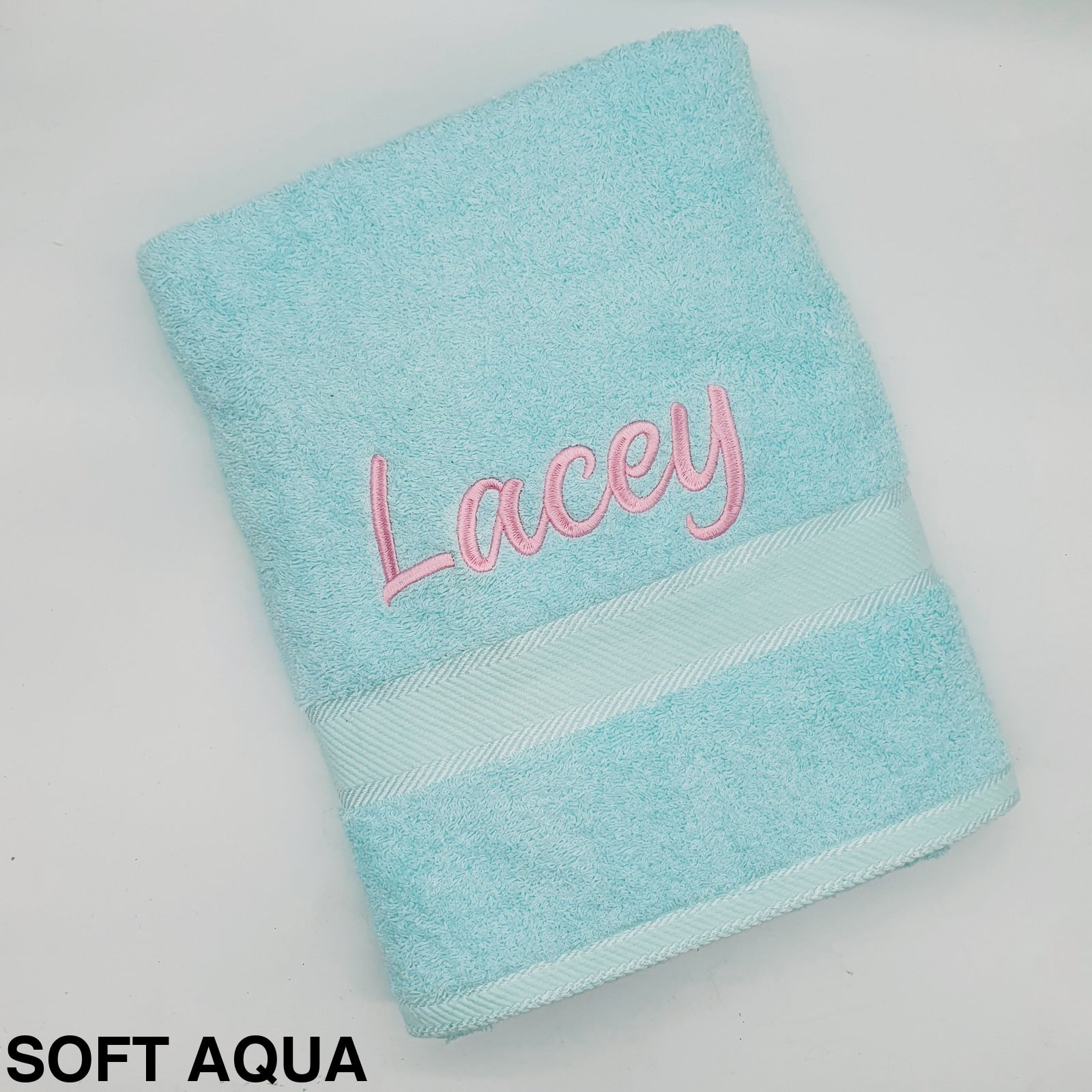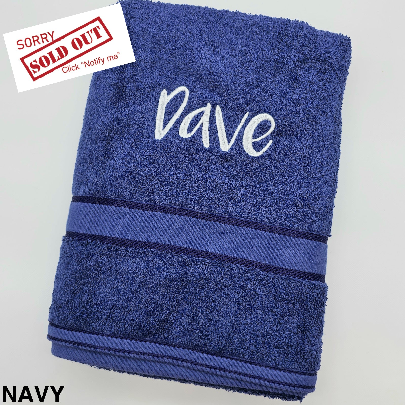 The Kingtex Towel range is a luxurious heavy weight, long wearing, made from 100% durable cotton and finished with a decorative satin band. 550gsm and approximately 68x 137cm. A range of colours available and personalised with a name in your choice of font and colour.