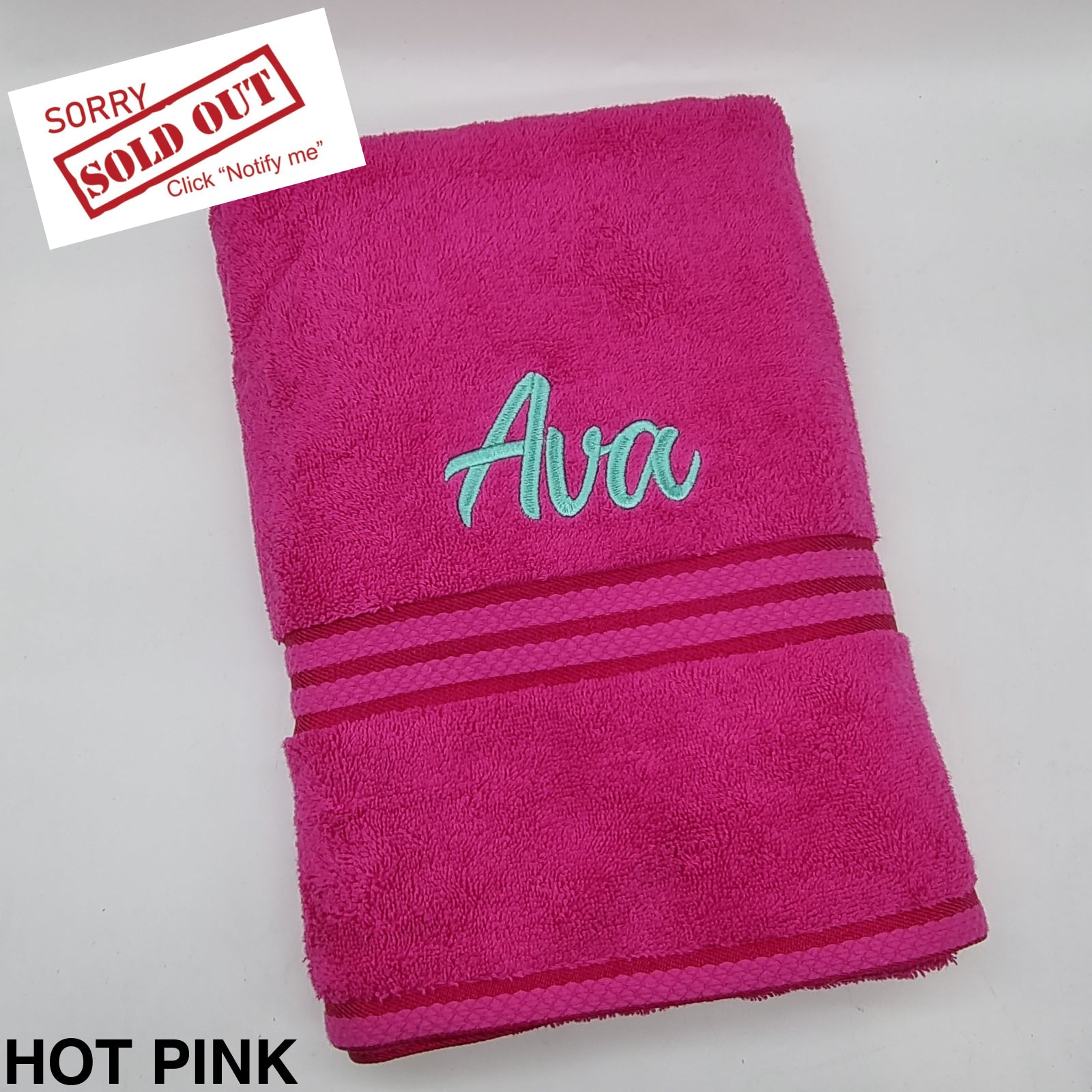 A range of colours available and embroidered with a name in your choice of font and colour.
