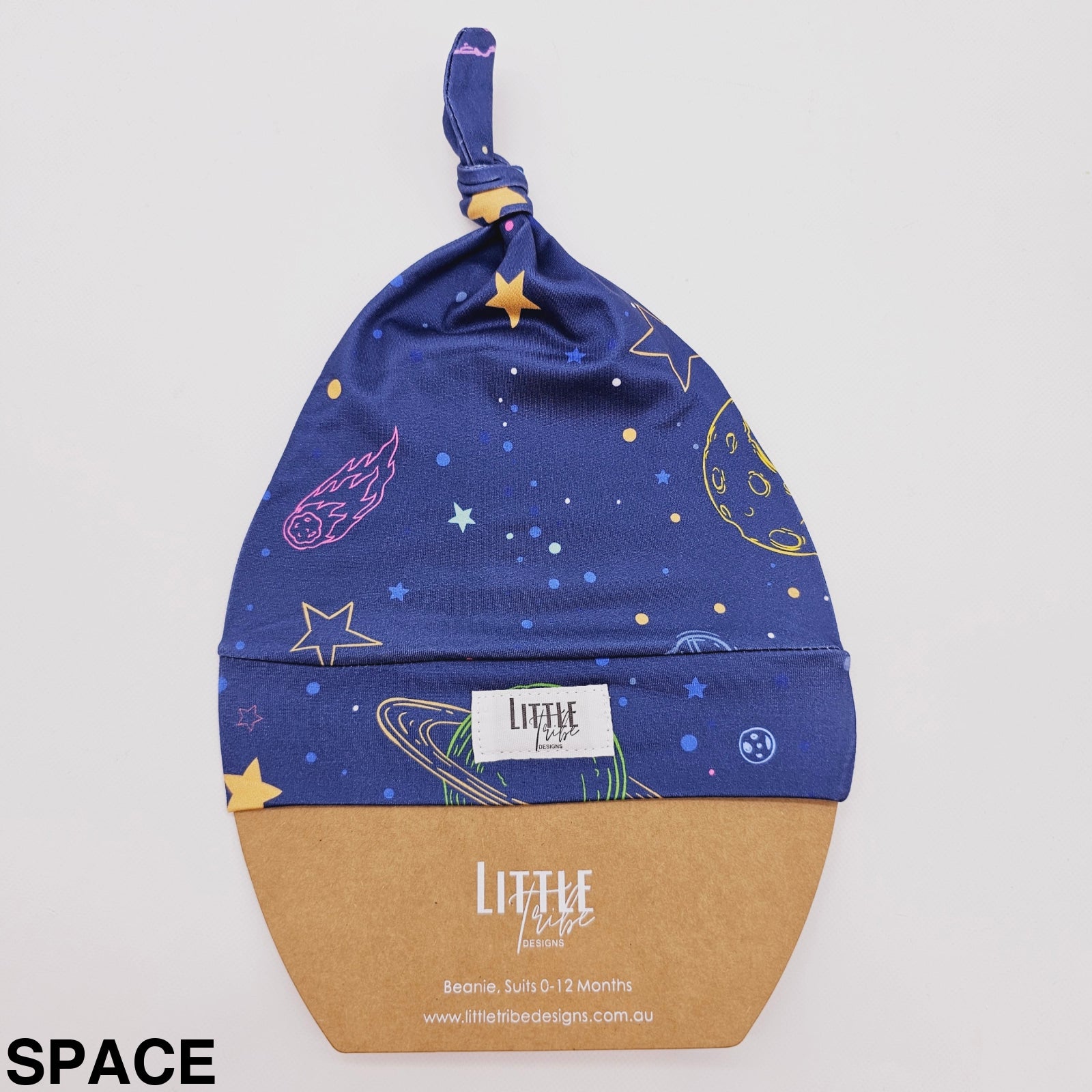 Our beanies are a soft and elegant addition to your little ones wardrobe and make the perfect gift for a new baby or expecting parent. The LTD beanies come in matching designs to our bedding and swaddle range and are made from a 95% Bamboo Viscose / 5% Elastane stretch fabric. Beanie is sized 0-12 months, simply tie the knot lower or higher to adjust to suit bubs head.