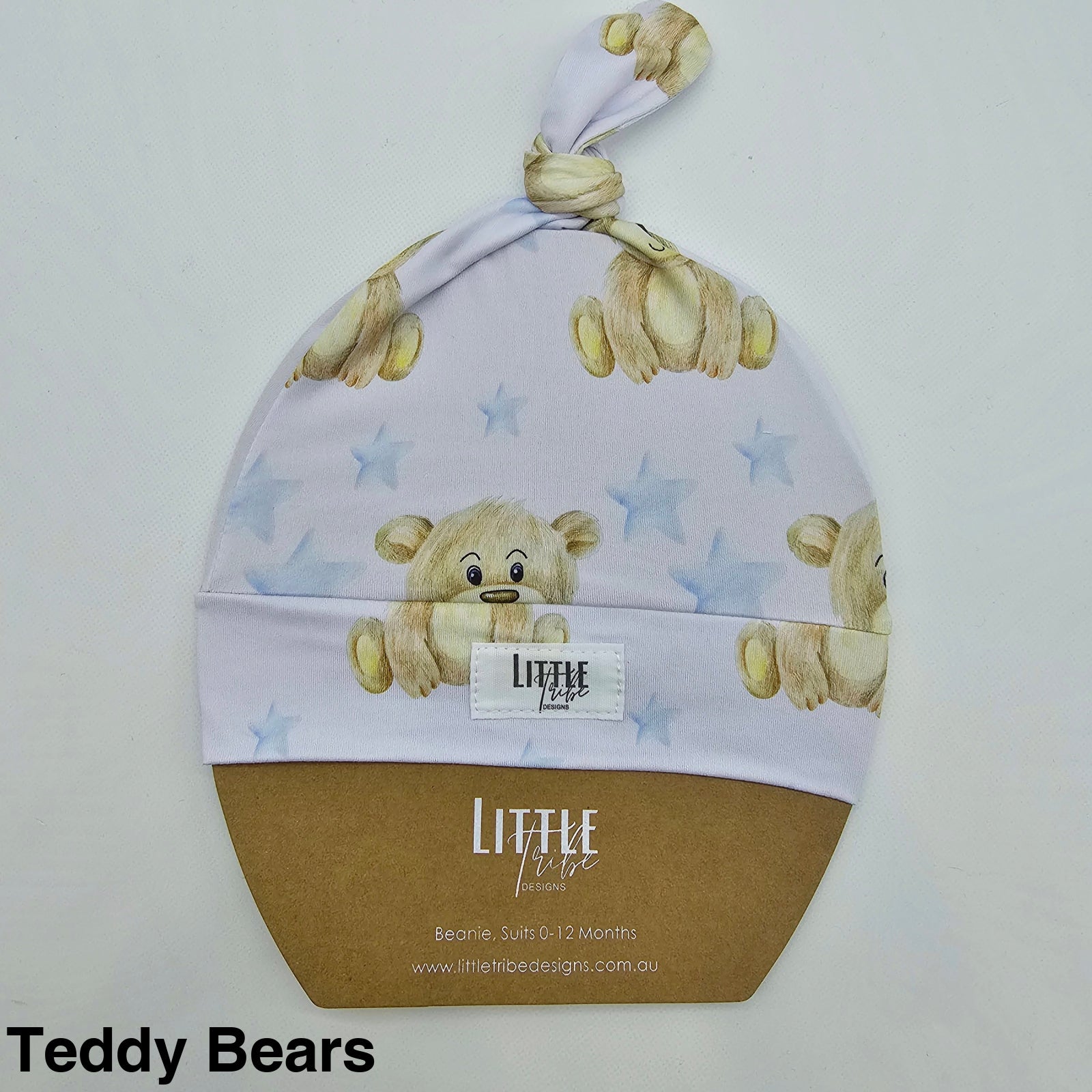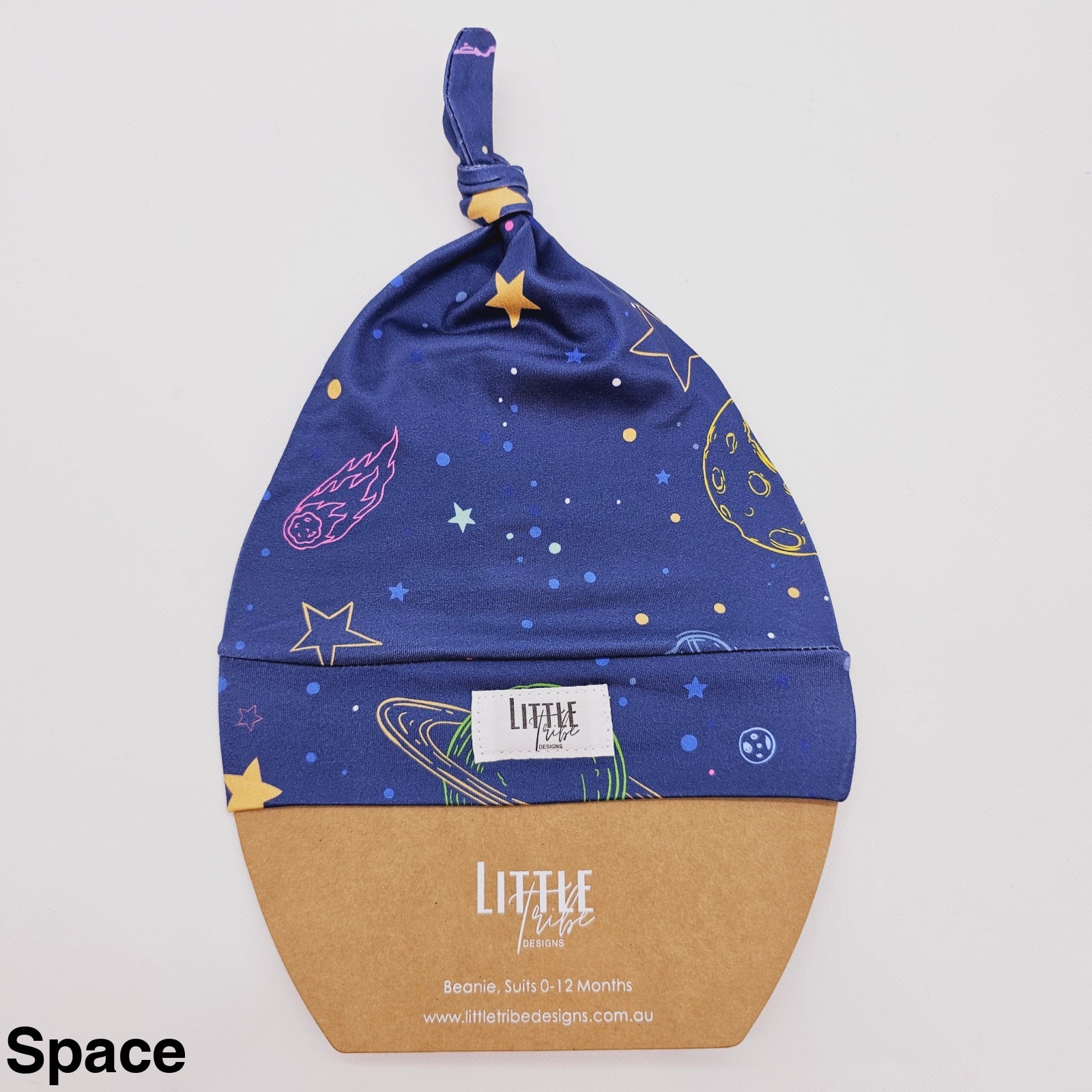Our beanies are a soft and elegant addition to your little ones wardrobe and make the perfect gift for a new baby or expecting parent. The LTD beanies come in matching designs to our bedding and swaddle range and are made from a 95% Bamboo Viscose / 5% Elastane stretch fabric. Beanie is sized 0-12 months, simply tie the knot lower or higher to adjust to suit bubs head.