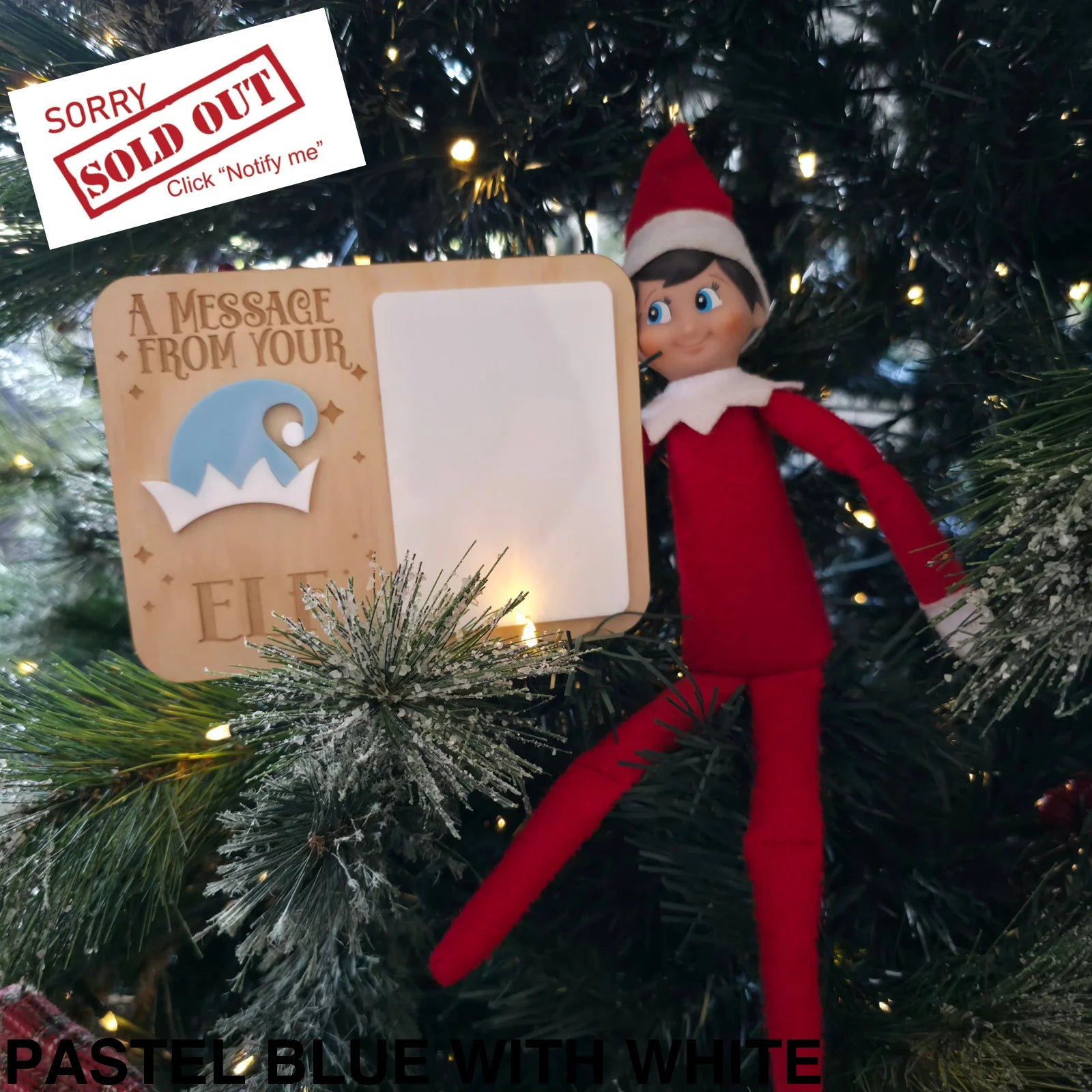 Available as a generic Message from your Elf version or a personalised Message from your Elf 'name' version, in four different colour options to suit your elf with an white acrylic piece to act as a whiteboard, simply use a whiteboard marker and then wipe clean with a damp cloth.
